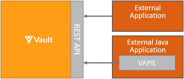 The pattern for integrating from an external or middleware system to Vault with Vault API.The pattern for integrating from an external or middleware system to Vault with Vault API.