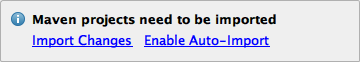 If prompted, select Import Changes. You can also Enable Auto-Import to instruct Maven to automatically import any future changes.