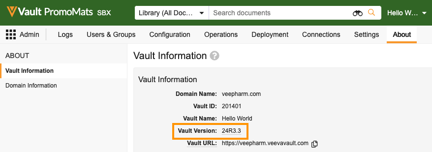 Verify the version of your Vault. You can find your Vault version in Admin > About > Vault Information.
