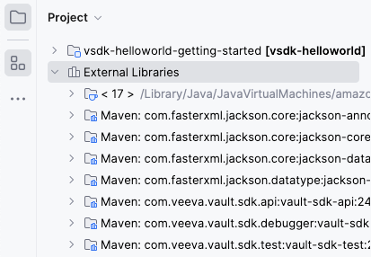 Maven: com.veeva.vault.sdk.api:vault-sdk-apilibrary shows your Vault version. If it does, your development setup is complete!